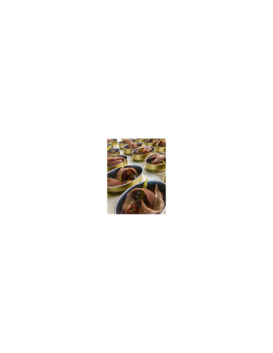 Elaboración artesana, dedicando a cada lomo de anchoa el tiempo necesario para bajar la concentración de sal y eliminar todas las espinas. Nuestro objetivo es conseguir los mejores aromas de la pesca. Las anchoas terminadas se envasan para su conservación en aceite neutro (girasol).